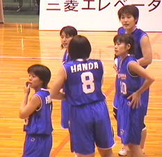 ・第2ピリオド いったい、どう立て直すのだろう・・・このまま、悲惨な結果になるのだろうかという心配。 ところが、オフェンスリズムがだめな時は、ディフェンスからと、ゾーンの導入などにより、リズムをとりもどす。 これで、なんとか試合らしくなってきた。やっと、元気でてきたね。 |