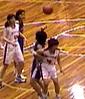 牧草リバウンドしようとするが、相手にウデを絡まれ飛べない。 が、しかし、ボールは相手の頭上にボーン・・・ |