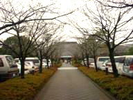入ると、並木がある