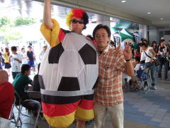 <ドイツ応援団に,ほうずりして縁起をもらう> |
